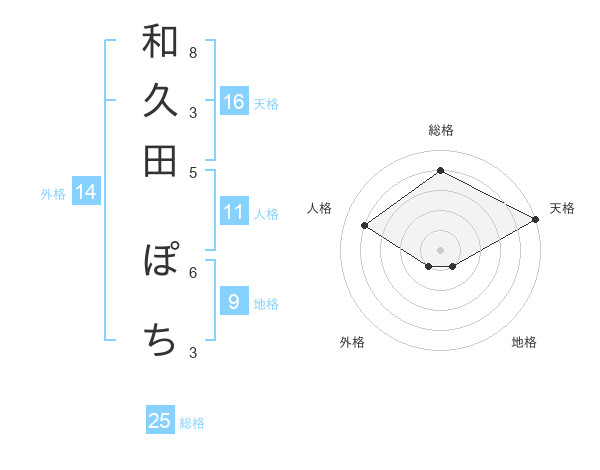 和久田 ぽちさんを姓名の画数から五運を鑑定