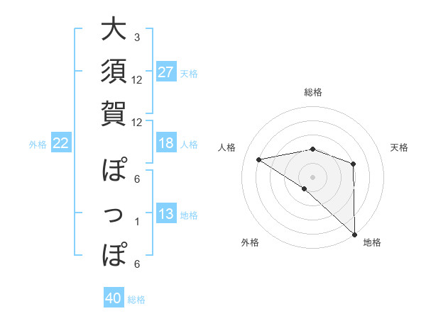 大須賀 ぽっぽさんの地格は13画の5点!