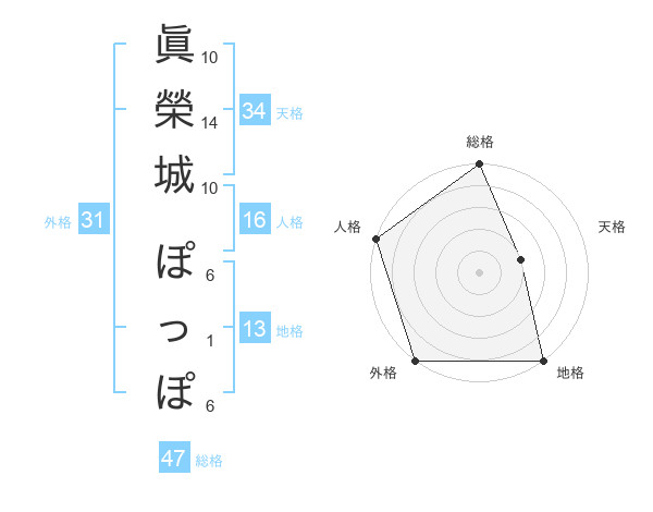 眞榮城 ぽっぽさんの総格は47画の5点