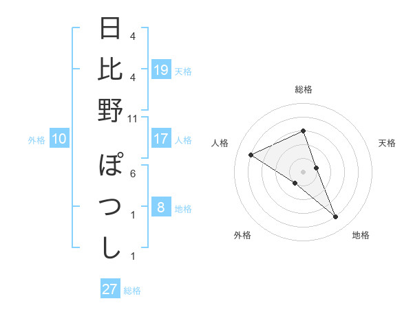 日比野 ぽつしさんの総格は27画の3点!