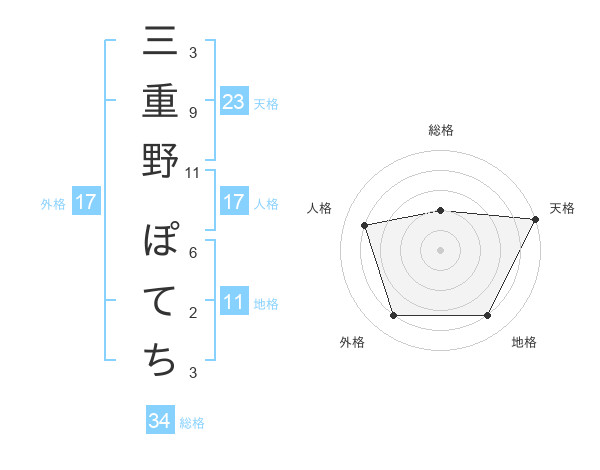 三重野 ぽてちさんを姓名の画数から五運を鑑定