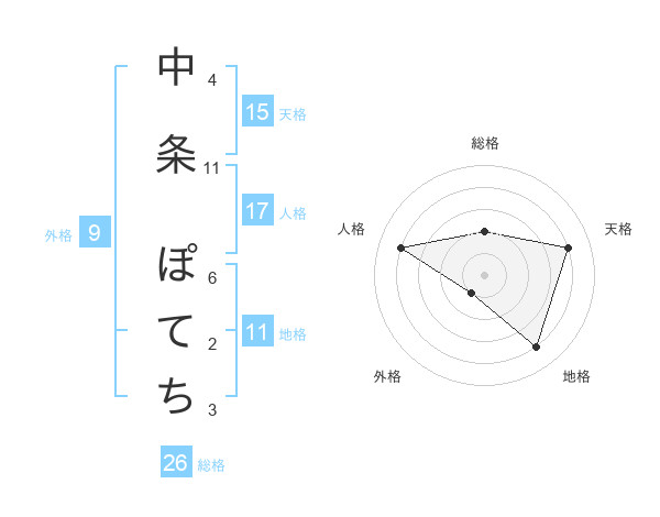 中条 ぽてちさんを姓名の画数から五運を鑑定