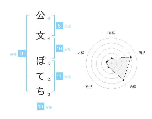公文 ぽてちさんを姓名の画数から五運を鑑定