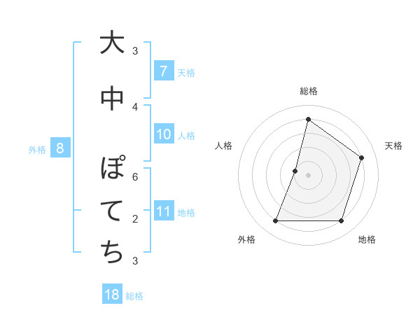 大中 ぽてちさんを姓名の画数から五運を鑑定