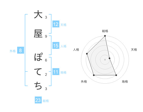 大屋 ぽてちさんを姓名の画数から五運を鑑定