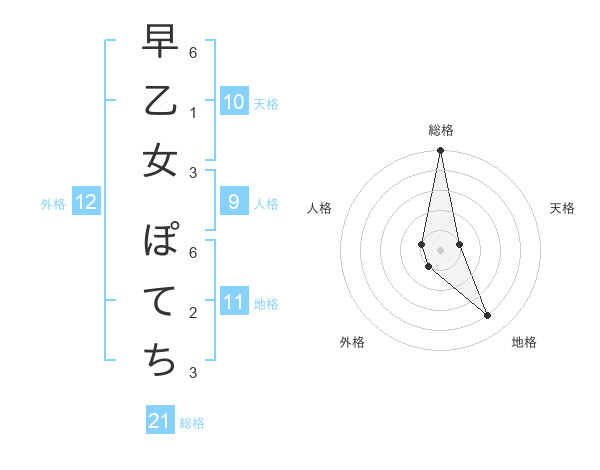早乙女 ぽてちさんの総格は21画の5点!
