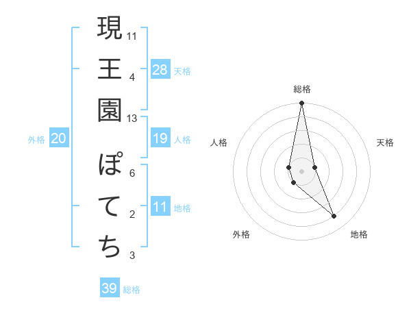 現王園 ぽてちさんを姓名の画数から五運を鑑定