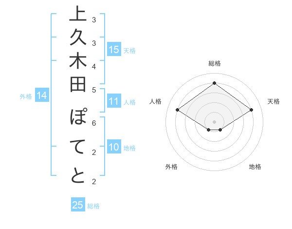 上久木田 ぽてとさんの天格は15画の4点