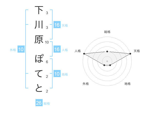 下川原 ぽてとさんの天格は16画の5点