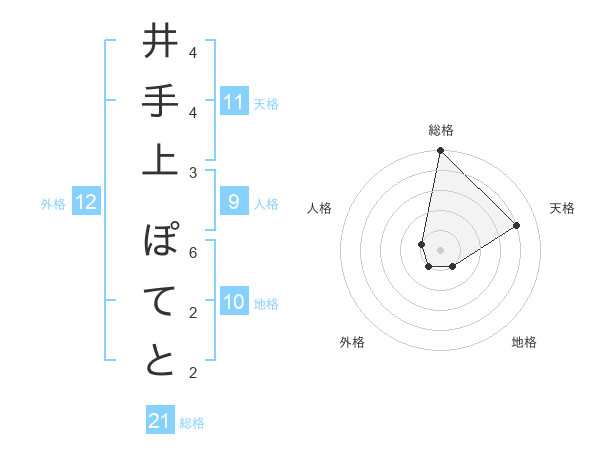 井手上 ぽてとさんの総格は21画の5点!