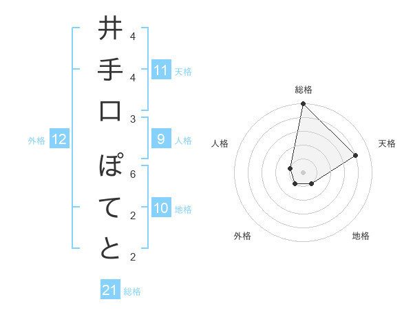 井手口 ぽてとさんを姓名の画数から五運を鑑定