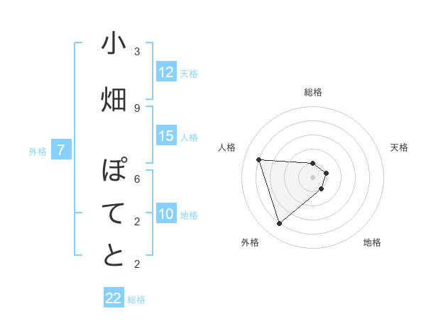 小畑 ぽてとさんの総格は22画の1点