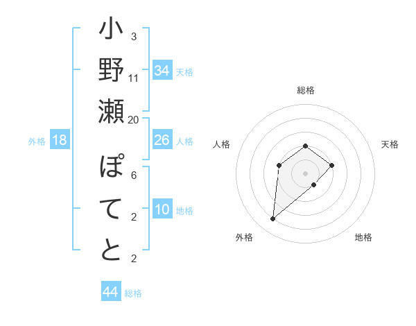 小野瀬 ぽてとさんを姓名の画数から五運を鑑定
