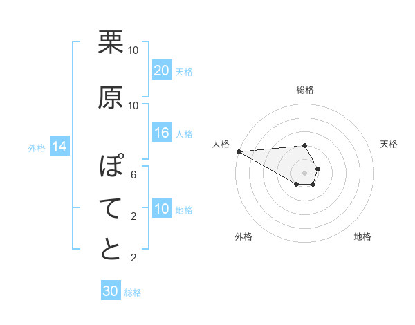 栗原 ぽてとさんを姓名の画数から五運を鑑定