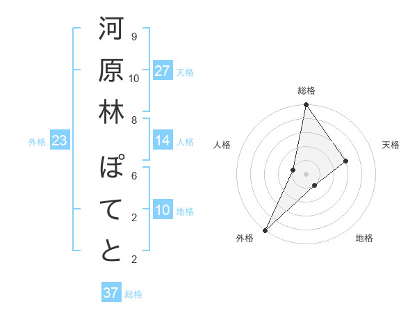 河原林 ぽてとさんを姓名の画数から五運を鑑定
