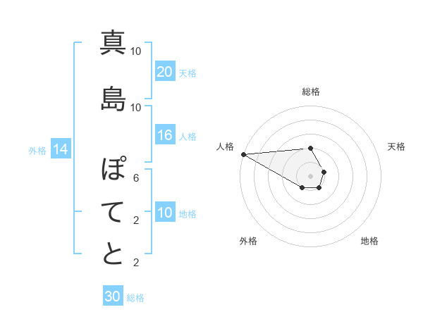 真島 ぽてとさんを姓名の画数から五運を鑑定