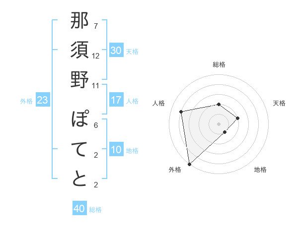 那須野 ぽてとさんを姓名の画数から五運を鑑定