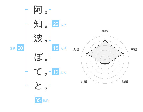 阿知波 ぽてとさんを姓名の画数から五運を鑑定