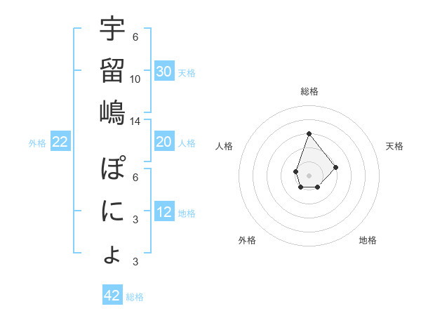 宇留嶋 ぽにょさんの地格は12画の1点!