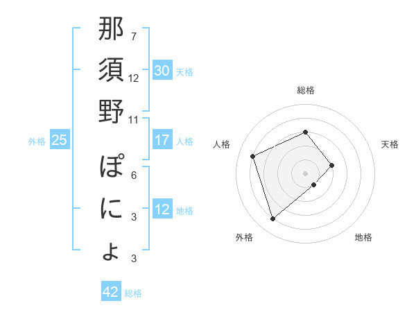 那須野 ぽにょさんを姓名の画数から五運を鑑定