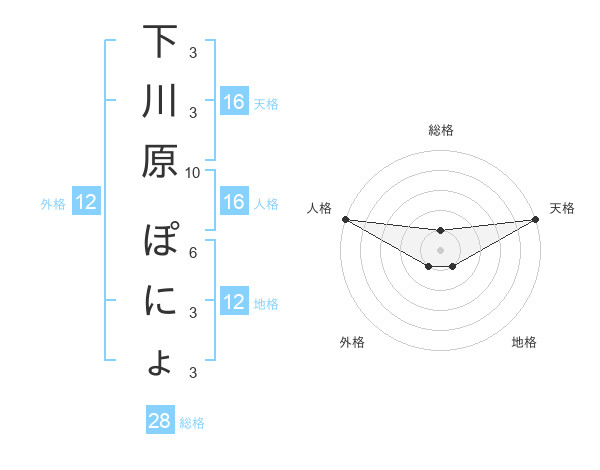 下川原 ぽにょさんを姓名の画数から五運を鑑定