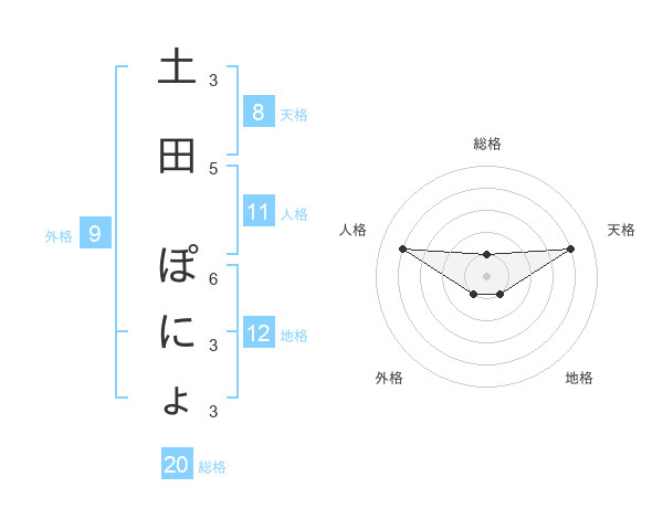 土田 ぽにょさんを姓名の画数から五運を鑑定