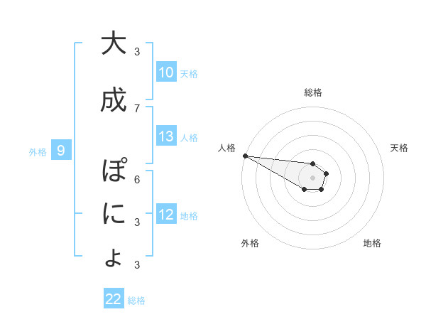 大成 ぽにょさんを姓名の画数から五運を鑑定