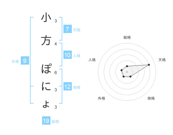 小方 ぽにょさんの総格は19画の1点
