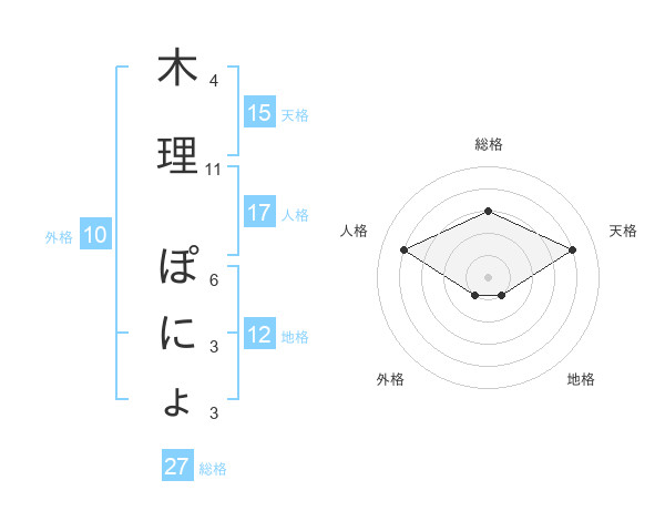 木理 ぽにょさんを姓名の画数から五運を鑑定