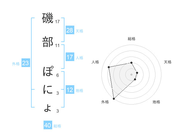 磯部 ぽにょさんを姓名の画数から五運を鑑定