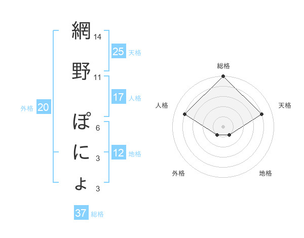 網野 ぽにょさんを姓名の画数から五運を鑑定
