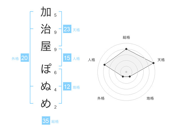 加治屋 ぽぬめさんを姓名の画数から五運を鑑定