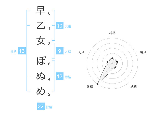 早乙女 ぽぬめさんの外格は13画の5点
