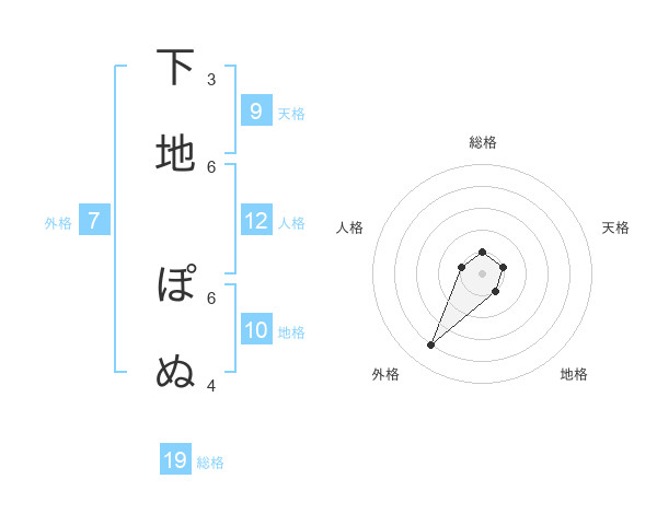 下地 ぽぬさんの外格は7画の4点!