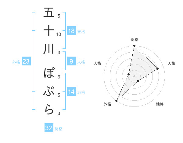 五十川 ぽぷらさんを姓名の画数から五運を鑑定