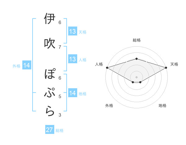 伊吹 ぽぷらさんを姓名の画数から五運を鑑定