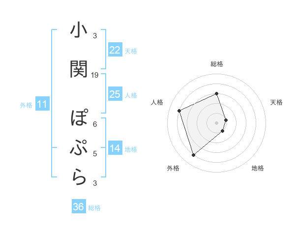 小関 ぽぷらさんを姓名の画数から五運を鑑定