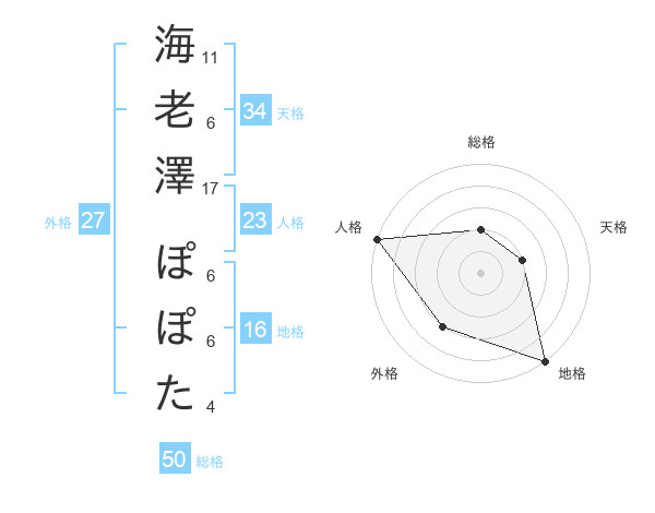 海老澤 ぽぽたさんの総格は50画の2点!
