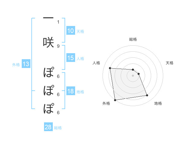 一咲 ぽぽぽさんを姓名の画数から五運を鑑定