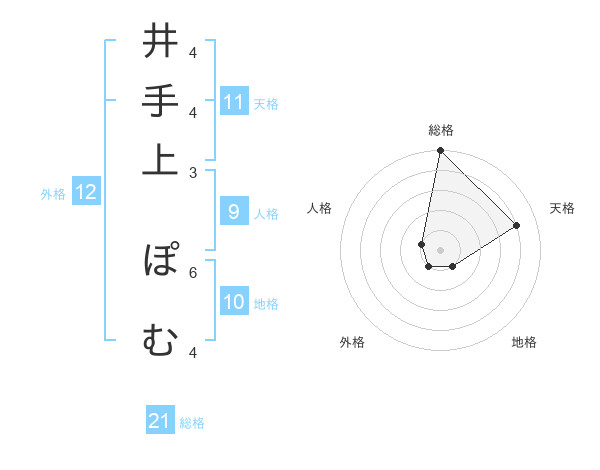 井手上 ぽむさんの総格は21画の5点!