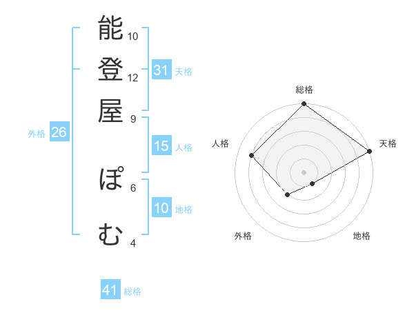 能登屋 ぽむさんを姓名の画数から五運を鑑定