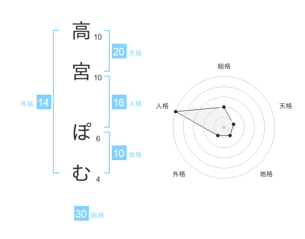 高宮 ぽむさんを姓名の画数から五運を鑑定