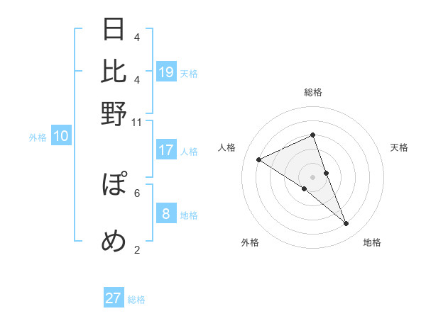 日比野 ぽめさんの総格は27画の3点!