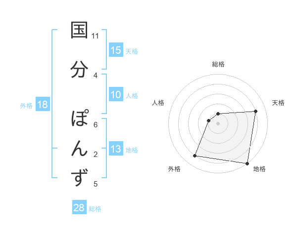国分 ぽんずさんの天格は15画の4点!