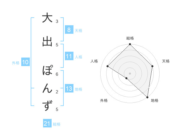 大出 ぽんずさんを姓名の画数から五運を鑑定