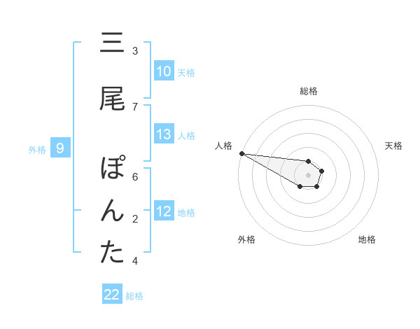 三尾 ぽんたさんを姓名の画数から五運を鑑定