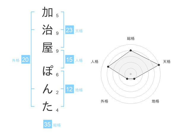 加治屋 ぽんたさんを姓名の画数から五運を鑑定