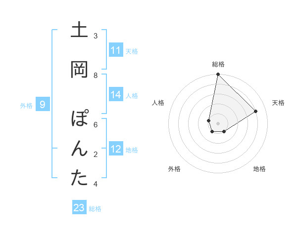 土岡 ぽんたさんを姓名の画数から五運を鑑定