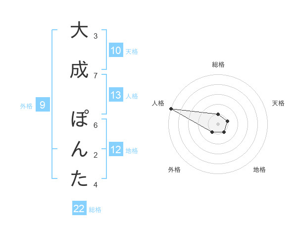 大成 ぽんたさんを姓名の画数から五運を鑑定