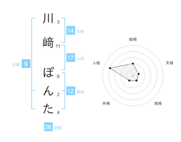 川﨑 ぽんたさんを姓名の画数から五運を鑑定